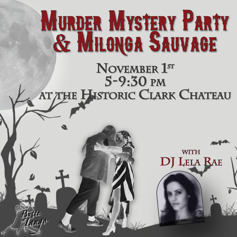 Our Milonga Sauvage or "Wild Milonga" will feature multiple dance styles: Tango, East & West Coast Swing, Salsa, and more!! (Be prepared for a Time Warp or a Monster Mash.)